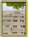 En el edificio, la fachada se construye con estructura de madera y acabado exterior de piedra. Así se consigue, en un grosor muy reducido, una fachada muy ligera y de altísimo rendimiento térmico con las siguientes características: supresión de los puentes térmicos, por ser la madera un material poco conductivo, 10 cm de aislamiento continuo por el exterior de la estructura, y una cámara libremente ventilada entre el aislamiento y la hoja de piedra que se ve exteriormente. La fachada se completa con un conjunto de parasoles, que son móviles en las orientaciones Este y Oeste, y fijos en la Sur.